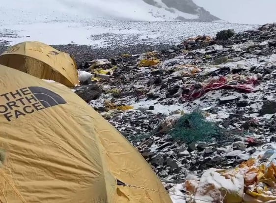 “Desalentador ver la acumulación de basura en el Campo IV en el Monte Everest (8848,86 m). Ya es hora de que abordemos este problema con urgencia y compromiso. Exigimos regulaciones más estrictas, aplicación de prácticas limpias de escalada y estrategias eficaces de gestión de residuos”, dice @EverestToday, mostrando un video de ©: Tenzi Sherpa.
