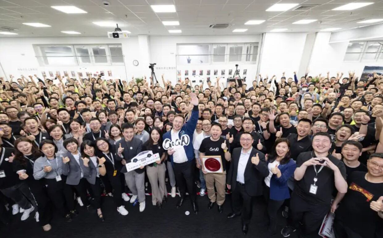 La vicepresidenta de Tesla en China, Grace Tao, publicó una foto en el sitio de redes sociales chinas Weibo que muestra a Musk saludando a la cámara con trabajadores en Shanghái y que aparece como imagen principal de esta publicación.