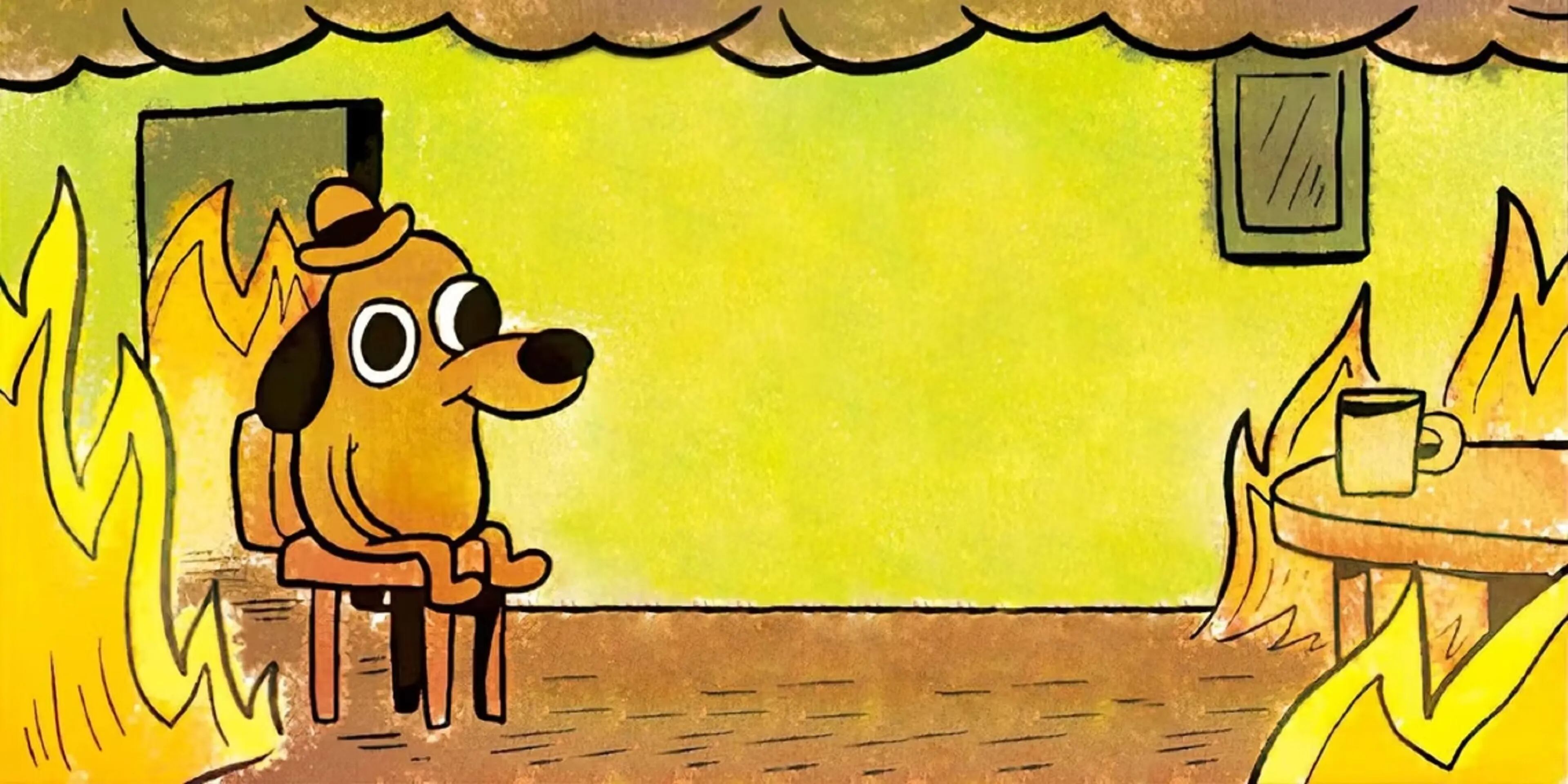 A través de su cuenta oficial de Twitter la gente de WinRAR ha publicado el clásico meme de “This is Fine”, en donde vemos a un perrito aparentemente calmado mientras todo su hogar está en llamas.