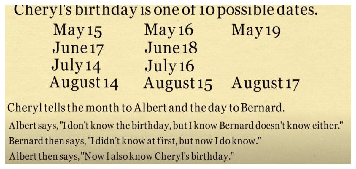 Albert: “No sé cuándo es el cumpleaños de Cheryl, pero sé que Bernard tampoco lo sabe”.