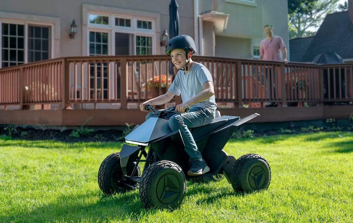 Se trata de un quad eléctrico para niños, algo así como una cuatrimoto eléctrica, bastante pesad con un diseño futurista que nos remita a la Cybertruck y que constituye uno de los episodios más embarazosos de la compañía.
