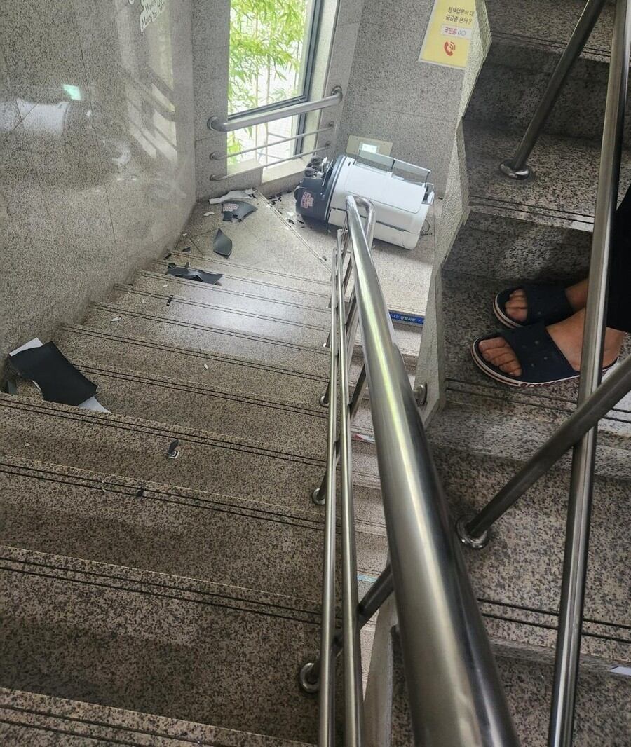 Supervisor Robot, fue visto girando en su propio eje antes de lanzarse por las escaleras.