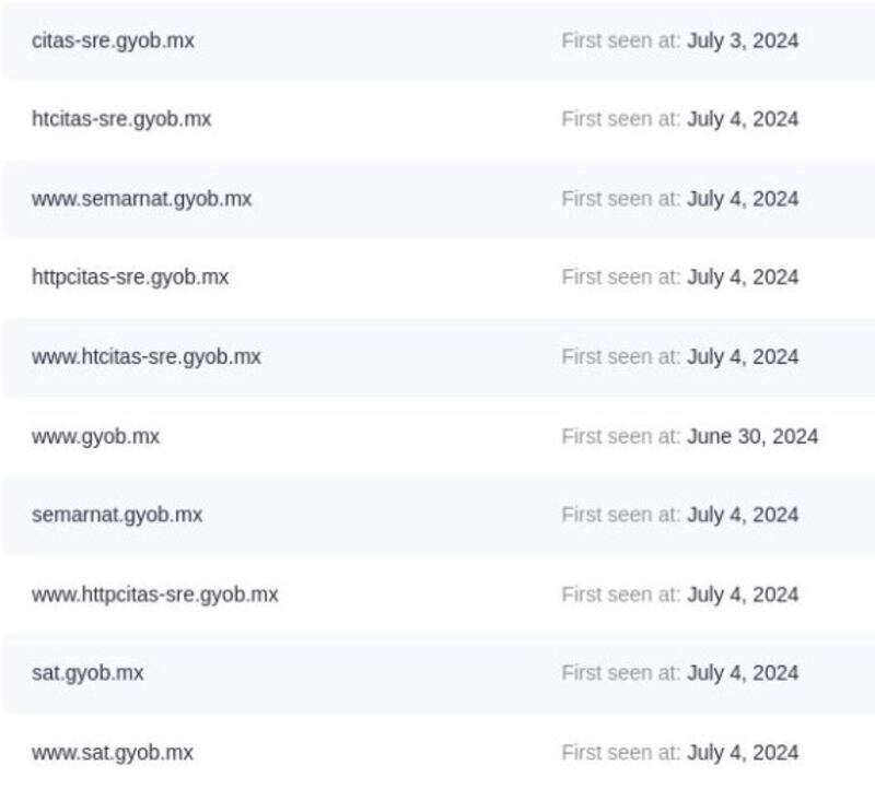 Estos dominios están registrados bajo gyob[.]mx, un dominio creado el 27 de junio, indicando la reciente activación de esta campaña.
