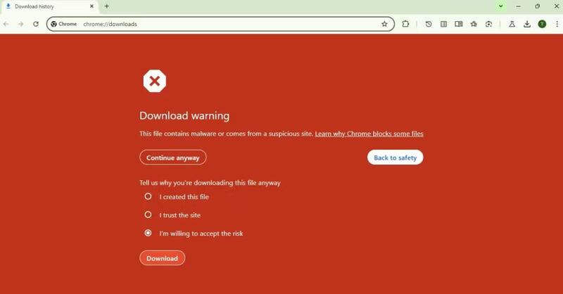 La nueva advertencia, denominada “DangerousDownloadInterstitial”, ocupará toda la pantalla del navegador, igual que las alertas que se muestran al intentar acceder a sitios web peligrosos. El mensaje será claro y conciso con una enorme pantalla en tonos rojos intensos: