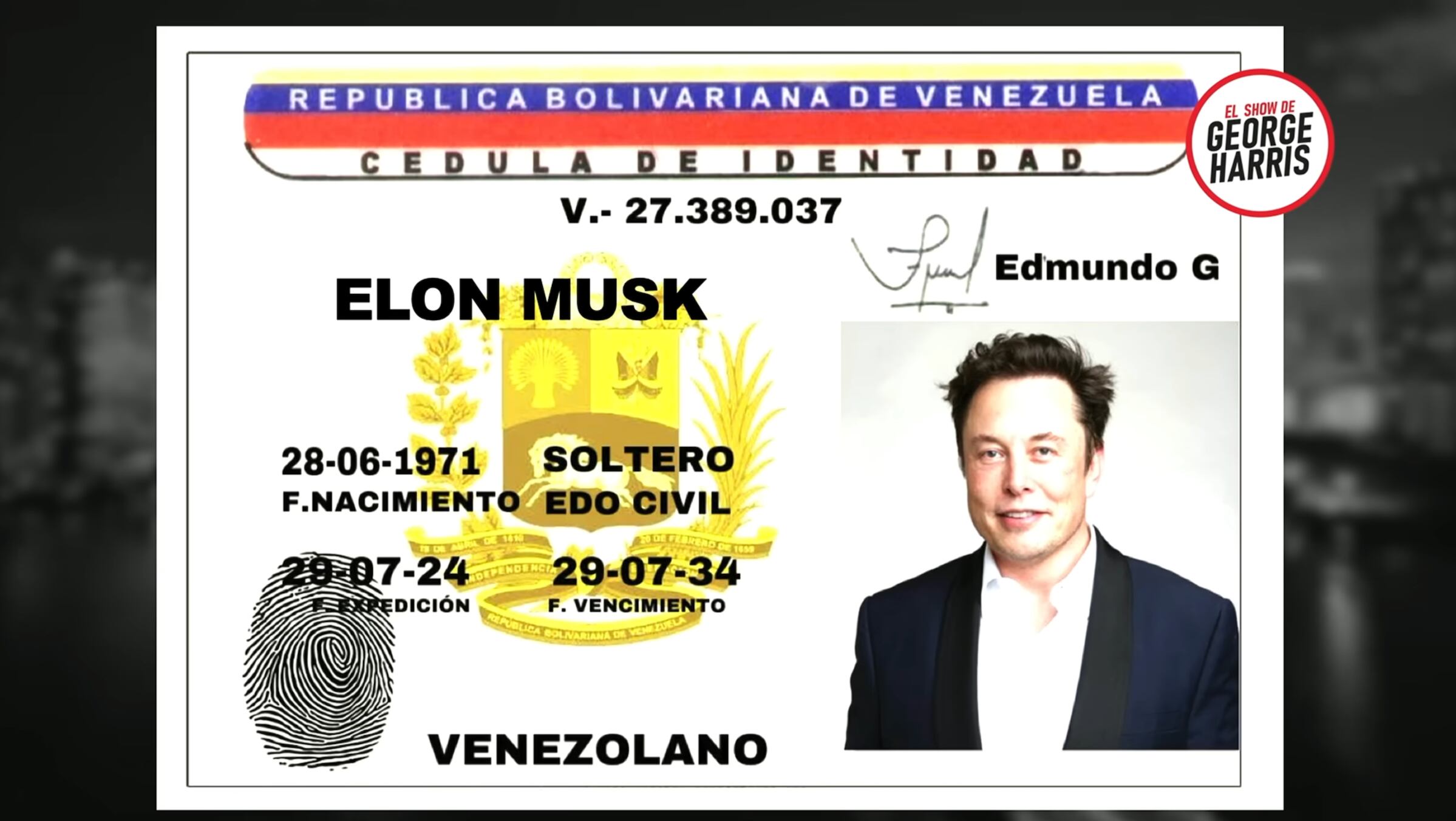 En su show “¿Quién se quiere ir?”, Harris le da las gracias a Elon por pelearse, desde su silla y en mundo virtual, con Maduro, e incluso compartió una imagen de cómo se vería su identificación.