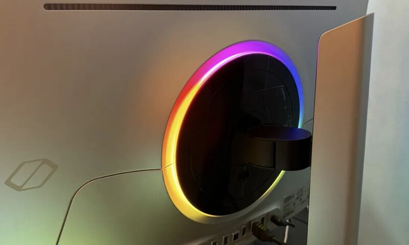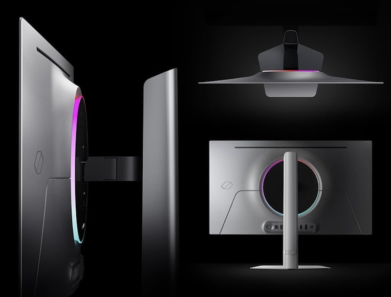 Hablemos de diseño: un lujo. Es un diseño muy elegante, en tonos plateados, que queda realmente bien en cualquier escritorio. Además, en su parte posterior tiene el ya habitual anillo de luz RGB presente en muchos monitores del fabricante, y que es configurable a través de los menús del monitor con diversos efectos y niveles de intensidad.