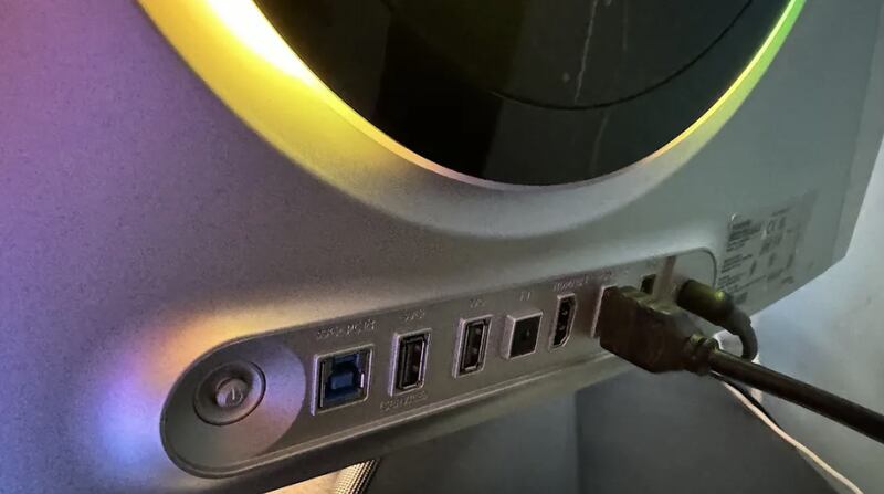 Y sumando a aquello, hay que destacar sus puertos: Cuenta con dos puertos HDMI 2.2, un DisplayPort 1.4, dos puertos USB 3.0, conector 3,5 para auriculares (no cuenta con altavoces integrados). Sin embargo, logra un audio increíble conectado a un buen parlante (en nuestro caso optamos por un Harman Kardon).