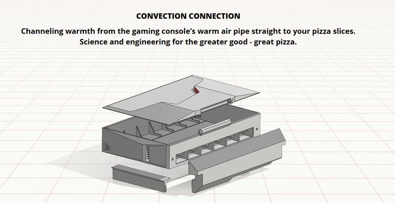 Primero deberás imprimir las partes siguiendo las instrucciones de los archivos. Tras armarla, éste “calienta pizzas” se monta encima de tu PlayStation 5 y aprovecha las salidas de aire de la consola para “capturar su calor”.