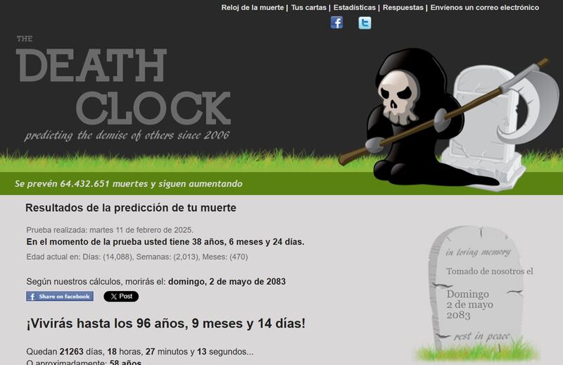 Con toda esta información, que podrías compartir sin problemas, el ‘Reloj de la Muerte’ te indica la fecha y la hora exacta en la que vas a morir.