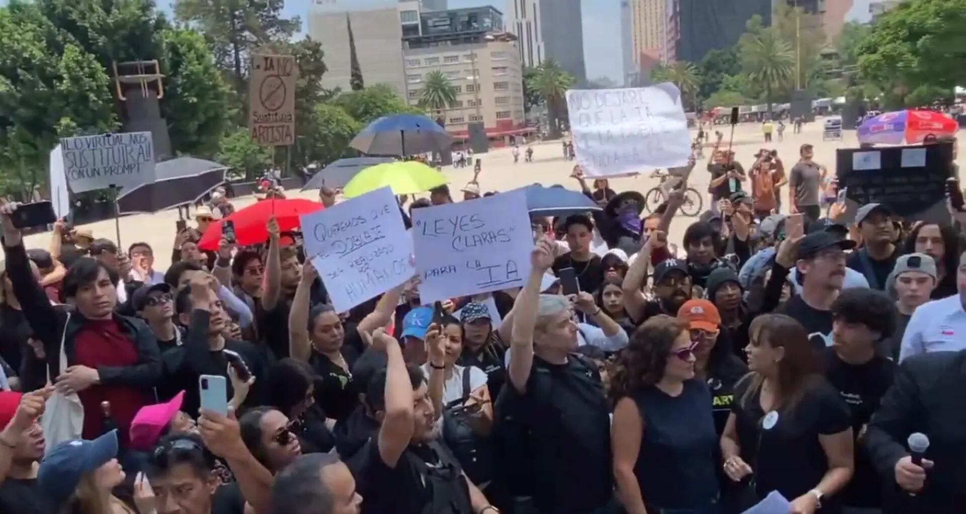 El gremio se reunió en el Monumento a la Revolución con una consigna muy clara: “Una sola voz”, pero bien potente. ¿El objetivo? Llamar la atención del gobierno para que la ley no se quede dormida mientras la IA avanza como Gokú en modo Ultra Instinto.