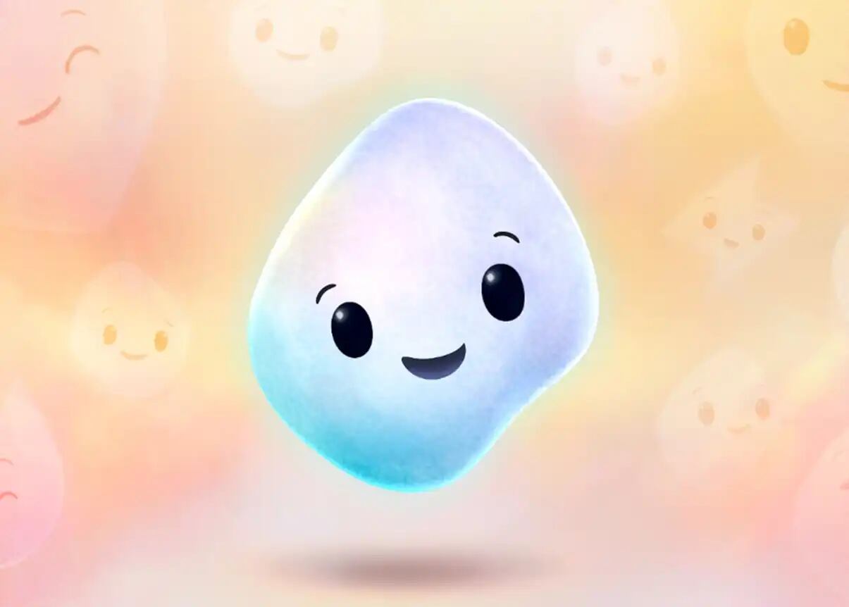 El resultado es una figura abstracta con forma de lágrima antropomórfica que sonríe, asiente, se concentra o parpadea según lo que diga o pregunte el usuario.