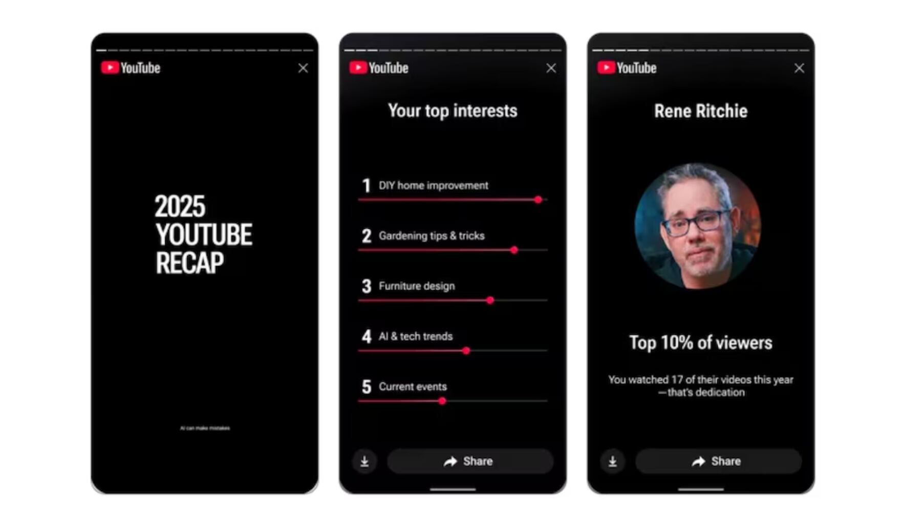 A diferencia de otros resúmenes centrados solo en música (como el de Spotify), el Recap de YouTube busca incluir la amplitud del contenido de la plataforma:
