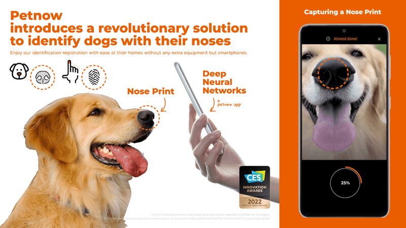 Así como los seres humanos podemos ser identificados por nuestra huellas digitales, los perros pueden reconocerse por los patrones de su nariz. Esta es la premisa de Petnow, una app creada por la startup C-Lab de Samsung y que fue galardonada en el CES 2022.