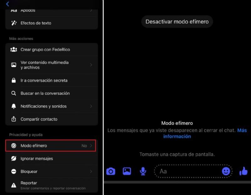 Si bien la herramienta ya está disponible en Messenger, es necesario que sea activada de forma manual por cada usuario. A continuación, estos son los pasos para activar las notificaciones de captura de pantalla con el modo efímero: