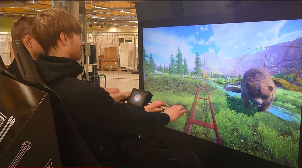 Una vez que el usuario está sobre el simulador, este estará frente a un televisor de unas 75 pulgadas. Además, a través de una interfaz táctil más pequeña que se encuentra en la Manilla de los asientos, las personas podrán elegir el entorno en el que quieren que se construya la montaña rusa virtual.