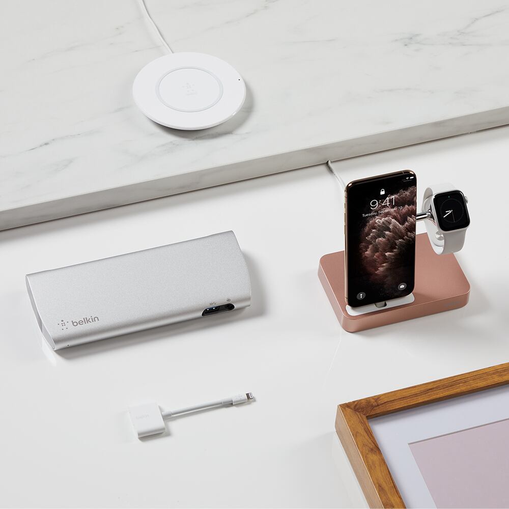El desarrollo tecnológico de Belkin no está solo destinado a telefonía celular. Durante el año pasado, la compañía lanzó el BOOSTCHARGE PRO Portable Fast Charger, destinado a aprovechar la carga más rápida del Apple Watch Series 7 (primer modelo de Apple Watch en adoptar la carga rápida). El objetivo fue lograr un complemento ideal para los usuarios que requieren tener sus dispositivos listos en el menor tiempo posible.