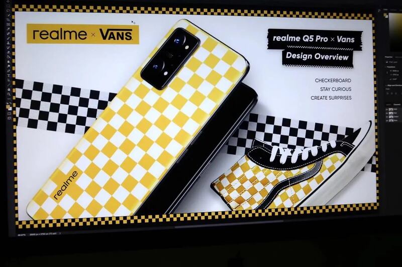 A través de una foto de la pantalla de un ilustrador de Realme, que trabajaba en el diseño del poster del Q5 Pro supimos que habrá una colaboración de la marca con Vans.