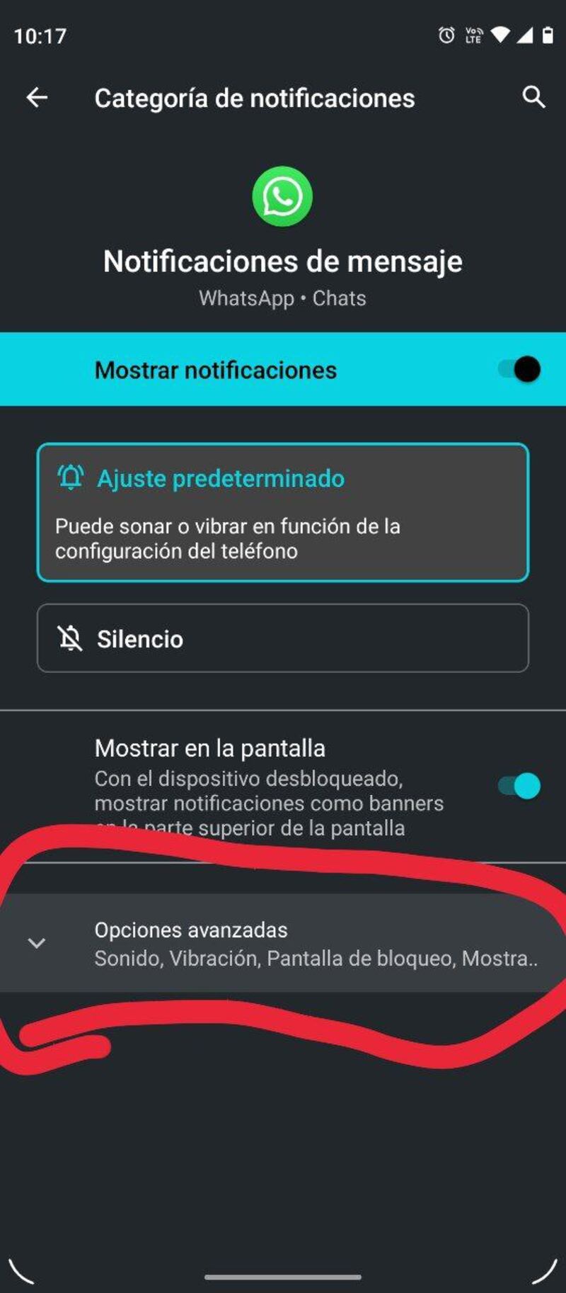 5. Ahí busca el apartado “Notificaciones de mensaje” e ingresa.