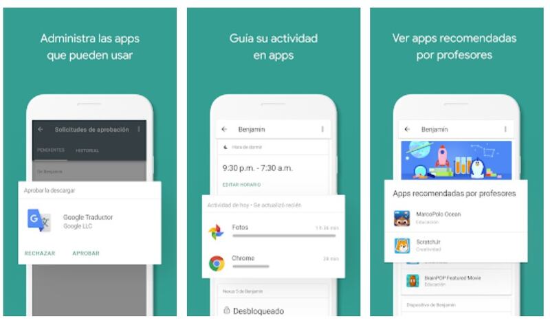 Con Google Family Link, los padres podrán consultar la actividad de los niños en las aplicaciones, ver informes diarios, semanales o mensuales de cuánto tiempo pasan en cada app y administrar los programas que utilizan con notificaciones que permitirán aprobar o bloquear las apps que los pequeños intentan descargar.
