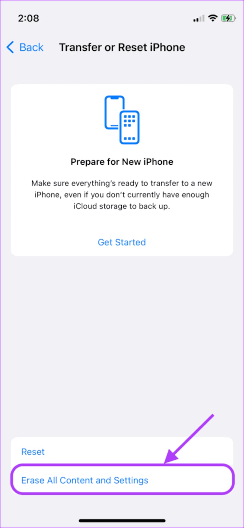 Para eliminar todo, vaya a Configuración > General > seleccione Transferir o restablecer iPhone > Borrar todo el contenido y la configuración > Continuar > Ingresa la contraseña de tu iPhone.