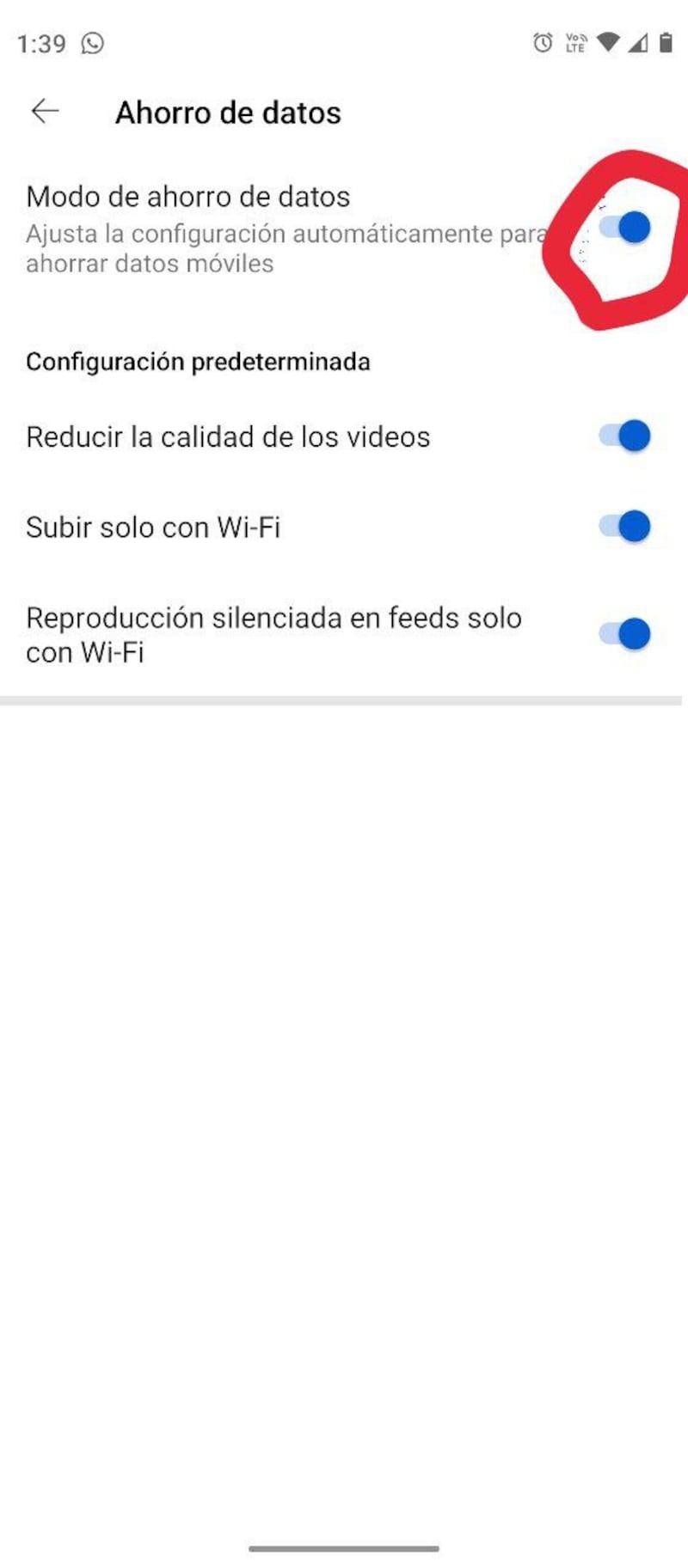 Al ingresar a la sección de “Ahorro de datos” debemos comprobar que todos los indicadores se encuentren desactivados, ya que es al estar en función nuestros videos se reproducirán con terrible calidad.