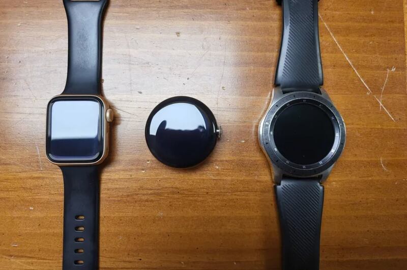 ¿Sus competidores? El Apple Watch y el Galaxy Watch de Samsung. Una foto filtrada del prototipo fue compartida en Reddit semanas atrás junto a sus futuros rivales.