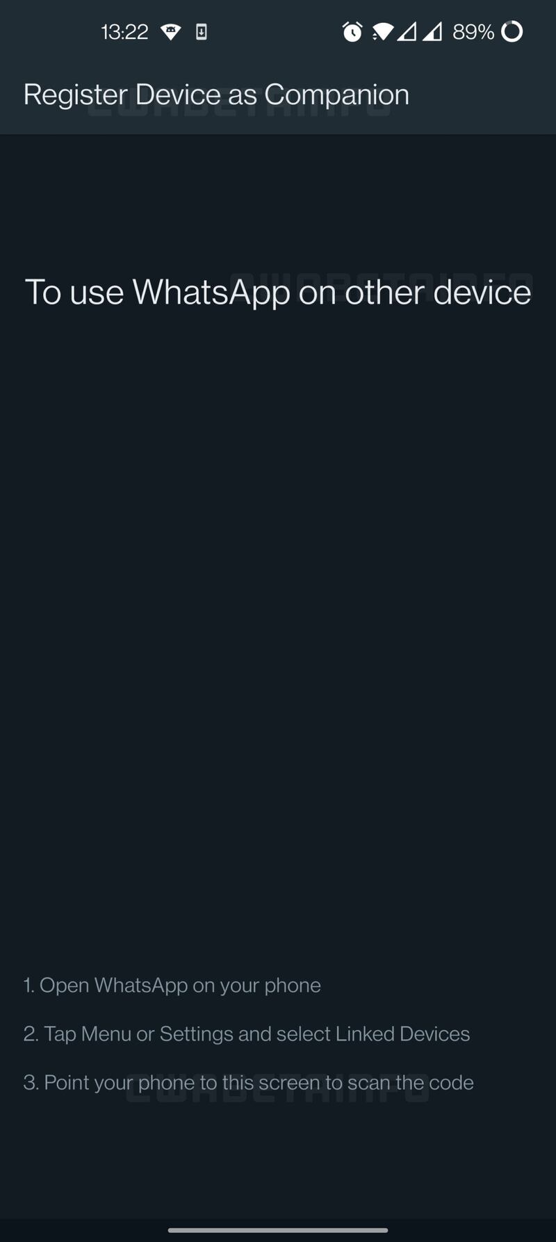 Como puede ver en la imagen filtrada, la sección se llama “Registrar dispositivo como complemento” y aparecerá cuando intente abrir WhatsApp en un dispositivo móvil secundario.