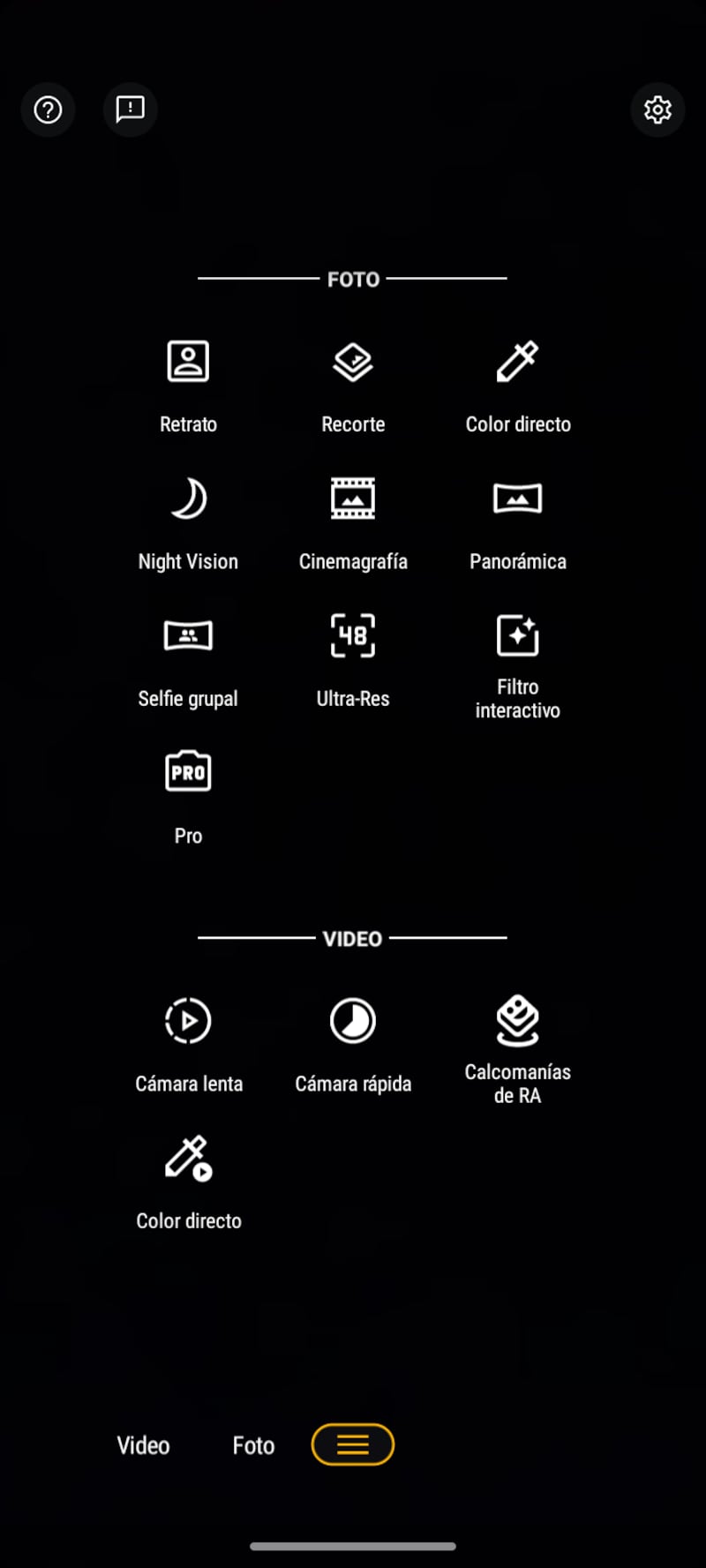 La inferfaz para grabar es simple: dos tipos de relaciones de aspecto, activación o desactivación de micrófono y flash, modo macro, cámara lenta, cámara rápida, un modo de estabilización y una herramienta llamada videos eficientes, que permite reducir el tamaño de los archivos grabados.