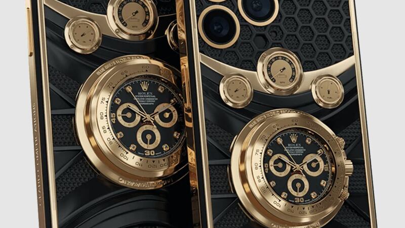 “Esta vez, el objetivo era un impresionante iPhone 14 Pro con un reloj Rolex incrustado en el cuerpo. El Rolex Daytona dorado es una obra de arte en sí mismo. Ahora se combina con el último teléfono inteligente de Apple, que es quizás el invento más relevante de humanidad en este momento”, comunicó la compañía.
