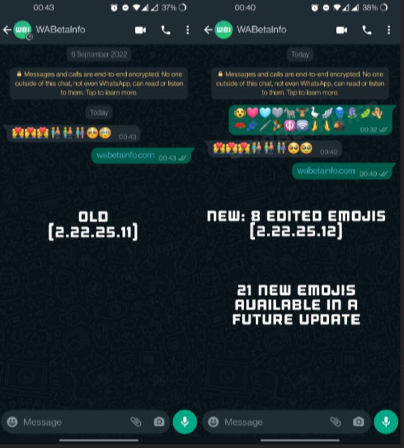 Por fortuna, la gente de WABetaInfo acaba de confirmar que se sumarán los nuevos emojis en una futura actualización tras revisar la beta 2.22.25.12 de WhatsApp. Estos 21 nuevos emojis deberían llegar a los usuarios con acceso a las pruebas beta de la aplicación en un futuro no muy lejano, aunque no exista en este momento una fecha concreta para ello.