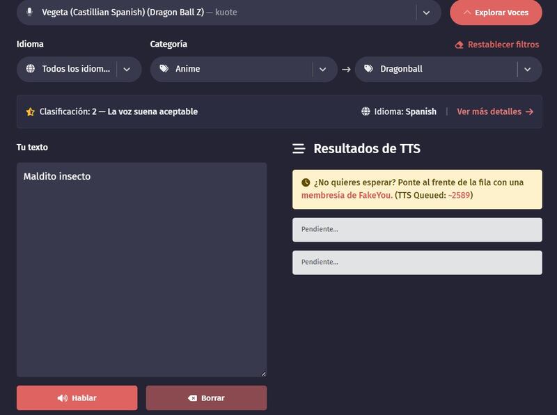 Para enviar audios de WhatsApp con la voz de Vegeta es necesario utilizar una herramienta que brinda el sitio web de FakeYou.com, que tiene miles de voces que se pueden utilizar para grabar divertidas notas de voz, incluyendo la del príncipe saiyajin.