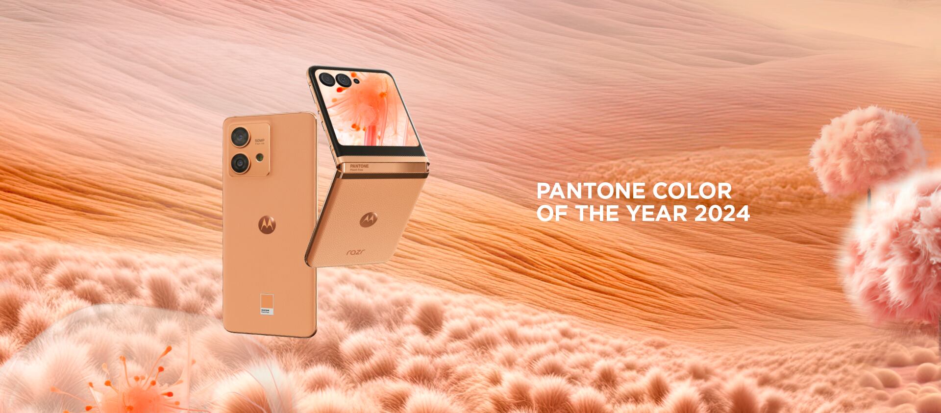Motorola y Pantone, autoridad global en lo que respecta al color, tienen una alianza bastante interesante, donde hemos podido observar varios productos en un color bastante veraniego. El Color del Año 2024 de Pantone, PANTONE 13-1023 Peach Fuzz, es llamativo, fresco y novedoso: ver celulares en este tono es algo nuevo.
