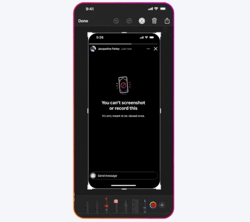 Una de las primeras funciones de Instagram para las cuentas de adolescentes, es el bloqueo de los screenshots (capturas de pantallas o pantallazos) en las funciones de las fotos de una sola visualización.