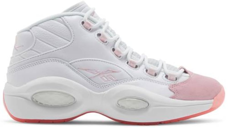 El colorway de las reconocidas Question Mid de Allen Iverson asume una tonalidad simple, blanco y rosa. La puntera rosa está hecha de piel de ante, y es la que le da el nombre a esta zapatilla especial para mujeres, con la tecnología Hexalite en sus suelas. Costo: 109 dólares.