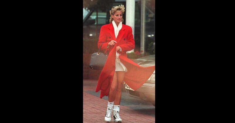 Lady Di llevaba las zapatillas tenis que actualmente mandan en el estilo urbano y son tendencia en el mundo: los clásicos blancos y los urbanos con suelas estilo Converse.