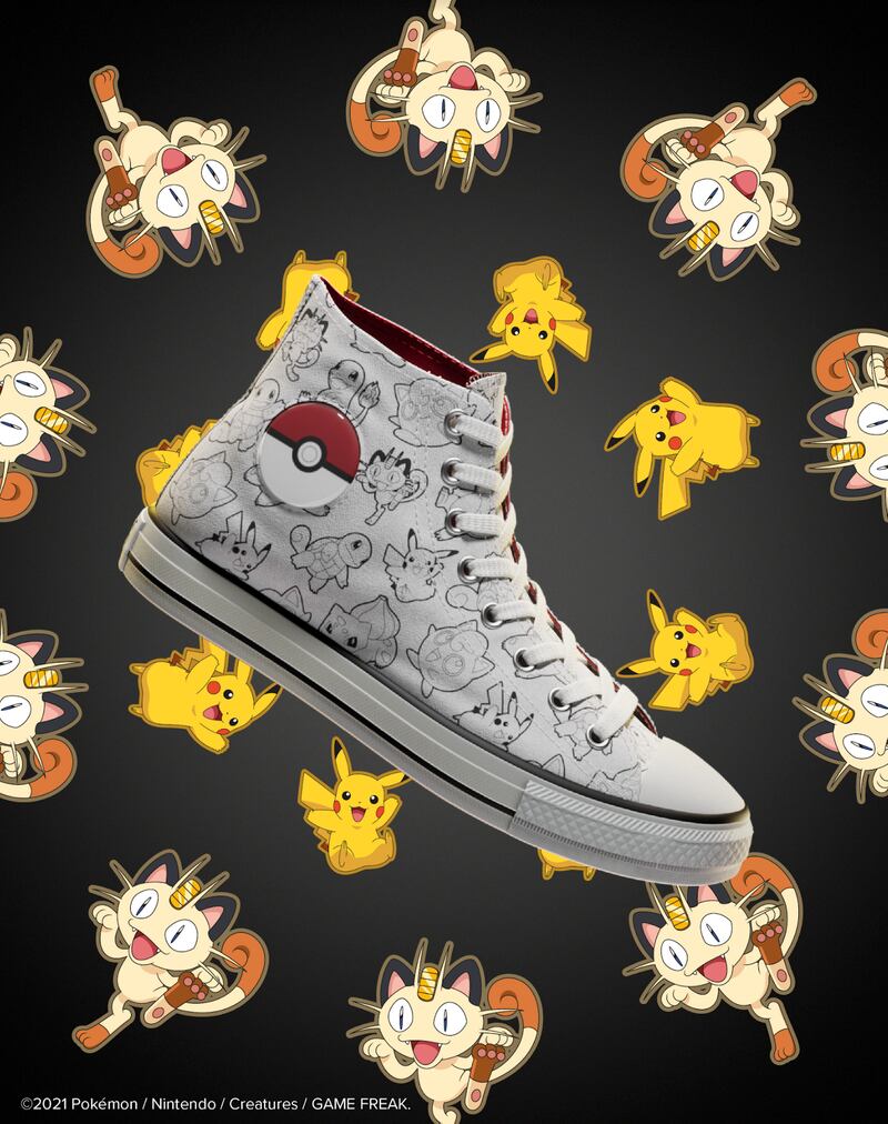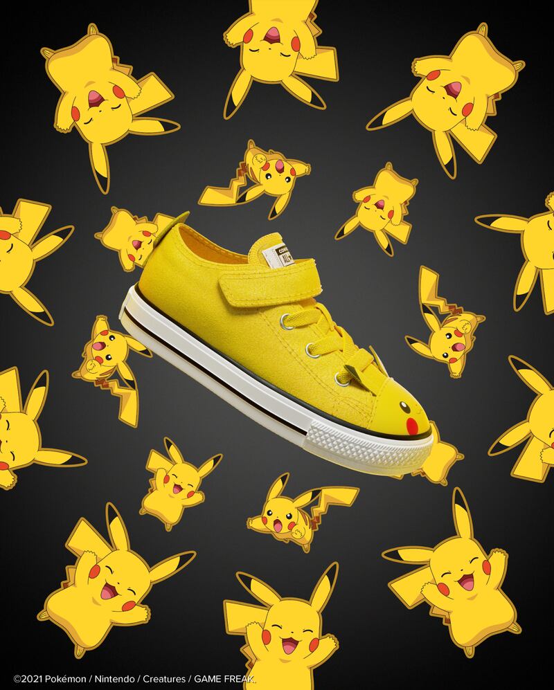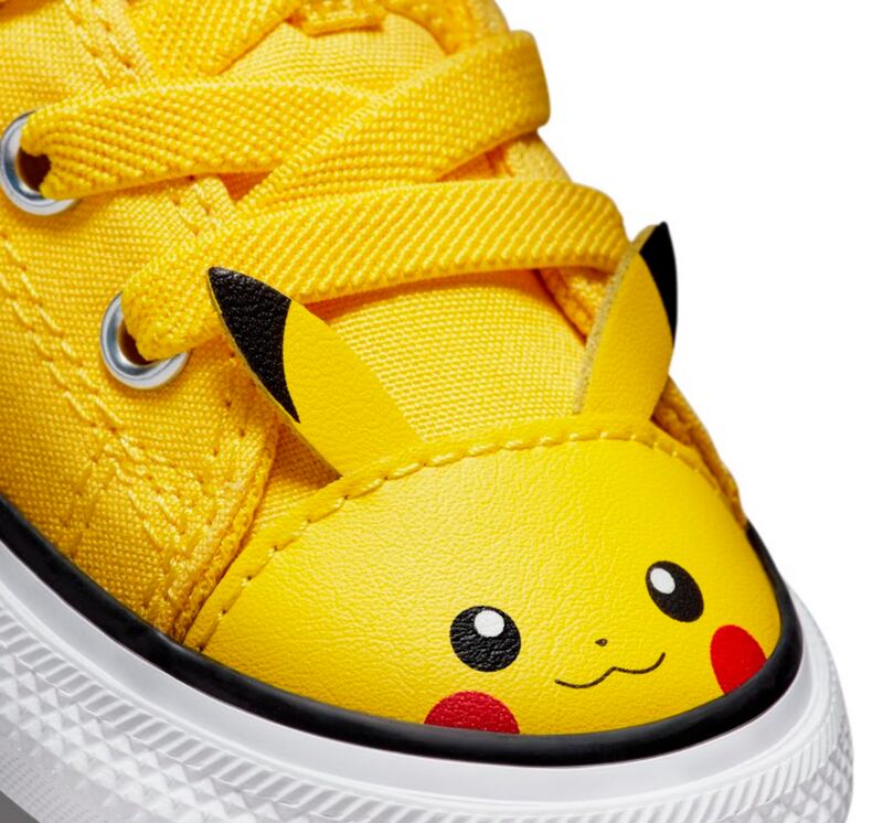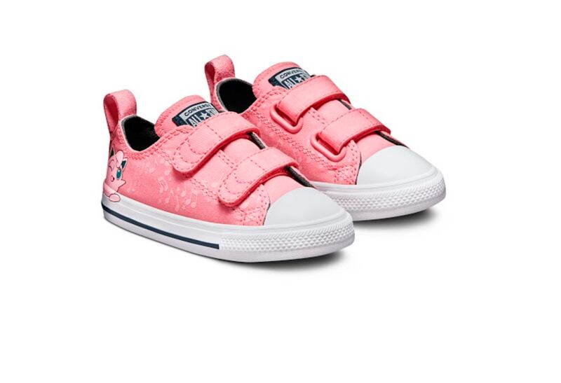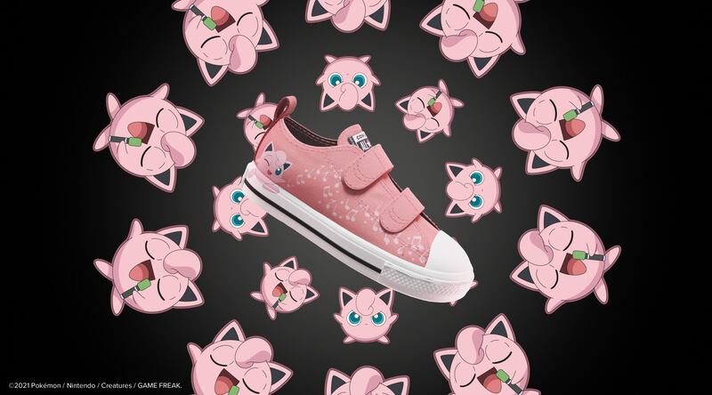 La imagen de este personaje también está impresa en una puntera de cuero amarilla, con orejas saliendo del frente y una cola de rayo en el talón, en alusión a las habilidades eléctricas del personaje. Un segundo diseño Chuck Taylor está creado para fanáticos aún más pequeños, con dos correas para máxima capacidad de ajuste. Una escena del canto de Jigglypuff está impresa en un lienzo rosa, superpuesto ligeramente sobre la cinta de goma para mayor dimensión. Tiene un precio referencial de $39.990 pesos chilenos.