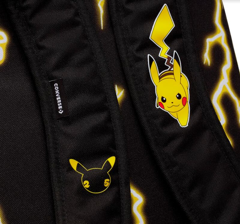 Mochila Camp Cap and Go 2: Completan la colección en utilidad y estilo dos accesorios inspirados en Pikachu. La primera, una gorra de campamento de estilo retro presenta un gráfico de goma en relieve en la parte delantera y una marca denominativa Converse “electrificada” en la parte posterior, que hace referencia a las habilidades eléctricas de Pikachu.