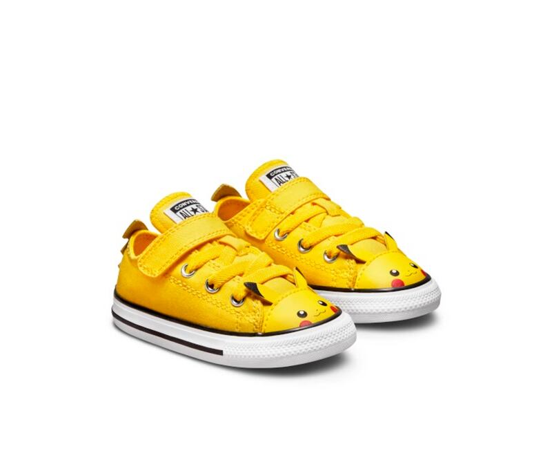 Easy-On Chuck Taylor All Star Ox (bebé): Diseñada para los más pequeños fanáticos de Pokémon, este modelo presenta dos de los personajes más reconocibles de la serie: Pikachu y Jigglypuff. Pikachu aparece en una parte superior de lona amarilla vibrante con una correa sobre los cordones elásticos.