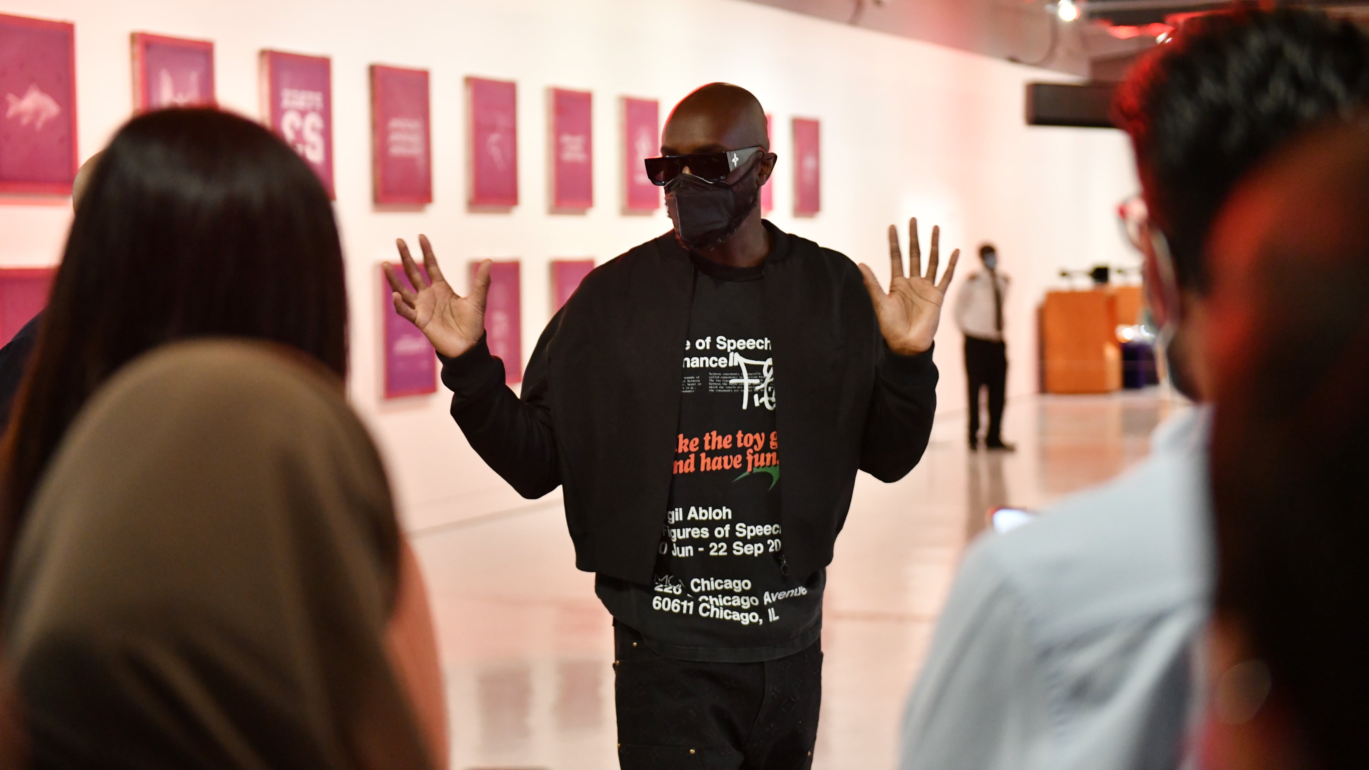 Virgil Abloh en una de sus últimas presentaciones (Craig Barritt/Getty Images for Qatar Museums)