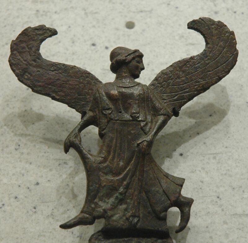 Davidson analizó una estatua de Niké, la diosa griega, y le llamó la atención sus alas. De aquí surgió el diseño original del logo que se registró en 1974.