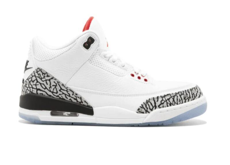 También destacan las Air Jordan 3 Retro Fire 2013, que como las anteriores son blancas con detalles negros, pero se les suman el rojo y el gris.