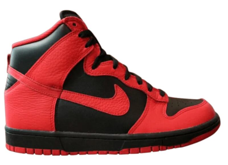 Otras son las Nike Dunk en colores rojo y negro, con el swoosh en rojo. Estos sneakers de corte alto fueron comercializados por la empresa norteamericana.