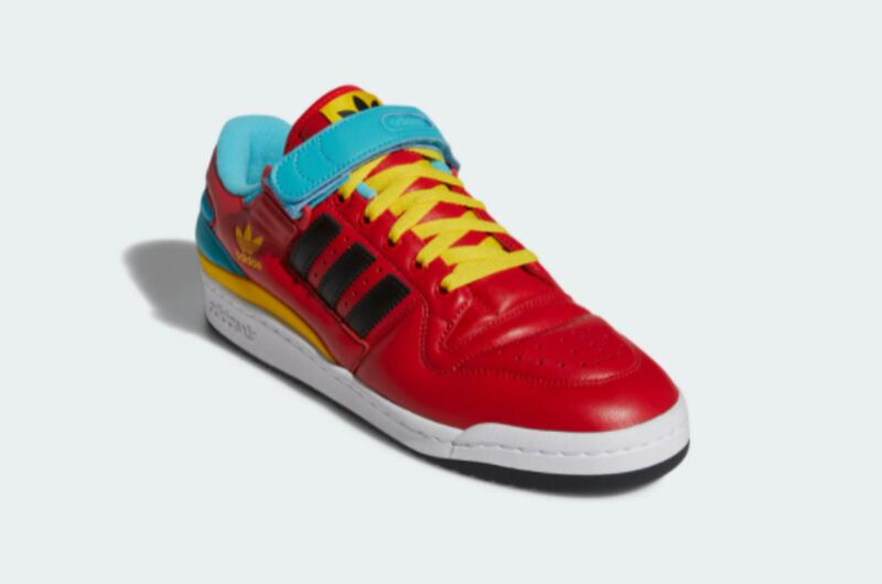 Inspiradas en Cartman, las Forum Low cuentan con el rojo como color principal, con cordones amarillos, bandas de Adidas en negro y detalles en celeste, incluyendo la cinta de velcro sobre los cordones. Precio: 100 dólares.