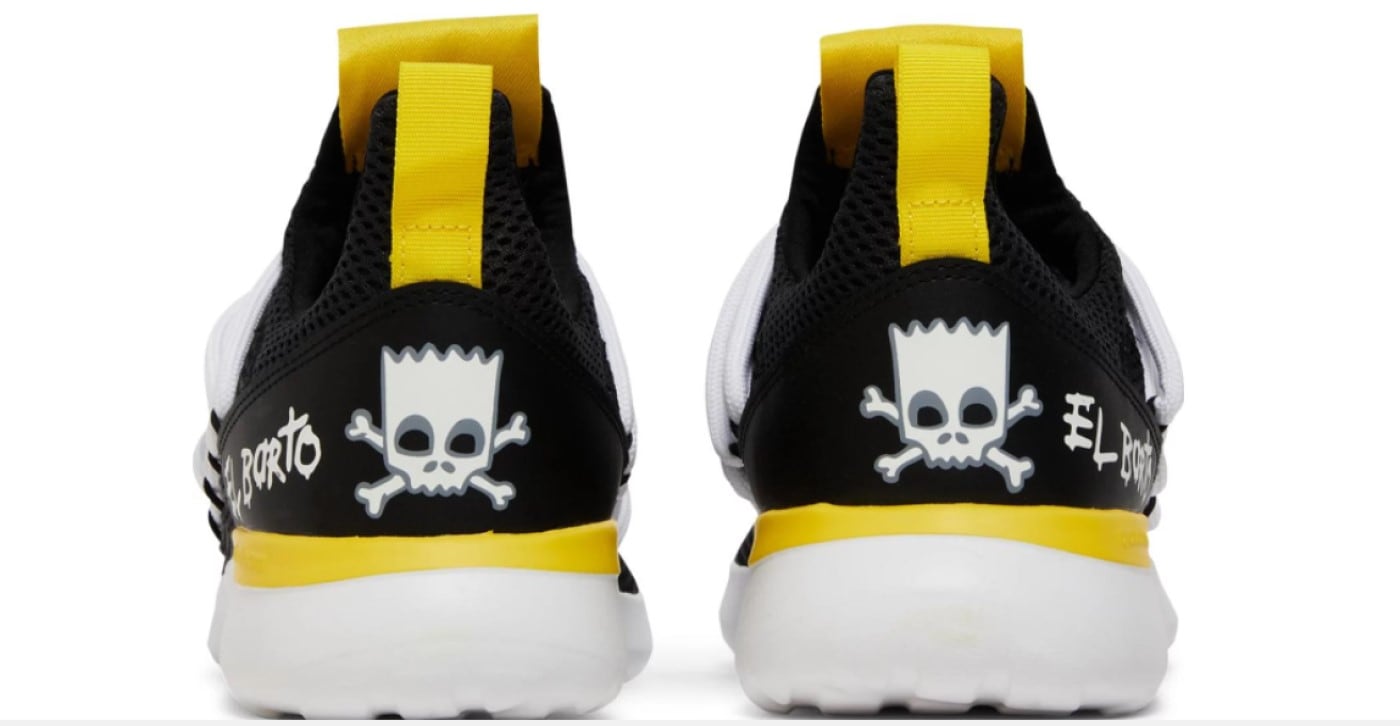 El Barto es el alter ego de Bart Simpson, un superhéroe nocturno que se encarga de grafitear en las paredes de Springfield. Estas zapatillas se vendieron en 2021, con un predominante color negro y detalles blancos y amarillos. En la parte posterior está la calavera de Bart, y en los laterales el nombre El Barto.