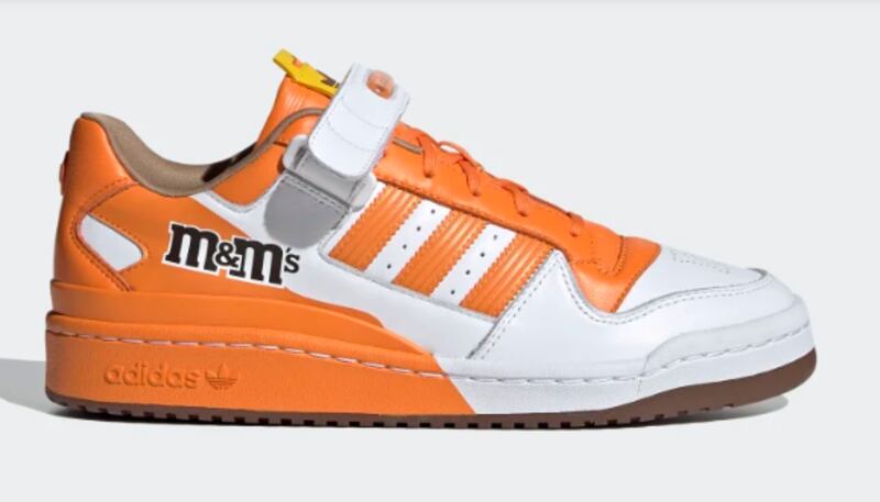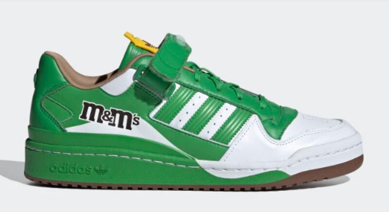 “Todos tienen sus colores favoritos de la marca M&M, ¿cuál es el tuyo?”, pregunta Adidas. “Muéstralo con estos zapatos Adidas Forum. La silueta icónica del baloncesto cobra vida con las personalidades de los diferentes personajes de M&M, cada zapato representa uno diferente a través de colores y detalles divertidos”.