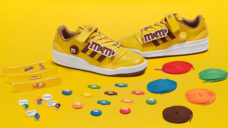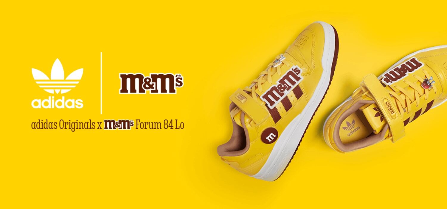 Adidas se alió con la compañía de dulces M&M para lanzar unas Forum Low 84 especiales, con varios elementos personalizables, en cuatro colores disponibles: amarillo, verde, naranja y chocolate.
