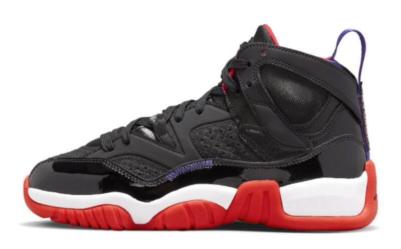 Estas zapatillas están fabricadas en malla mixta, con guardabarros sintéticos y de charol, así como la marca inspirada en el modelo 11 en la etiqueta y las lengüetas.