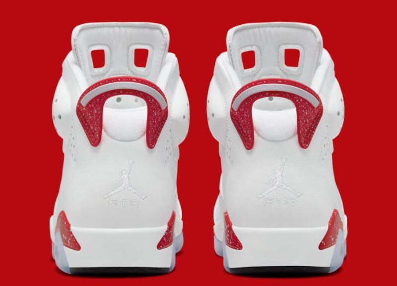 El diseño de las Air Jordan 6 Red Oreo es simple, con un toque clásico, algo noventoso (recordemos que las Air Jordan 6 fueron diseñadas por el gran Tinker Hatfield a principios de los 90): el color es predominantemente blanco, con detalles rojos y en las suelas, celestes.