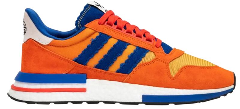 Un clásico de Adidas y Dragon Ball, las zapatillas de Son Goku vienen en el color del uniforme del personaje, naranja con elementos azules. Sus antesuelas son blancas y las suelas, negras: en la parte posterior del cuello se ubica el signo de Son Goku. Valor: 500 dólares.