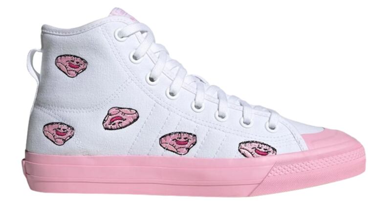 Esta colaboración de Adidas Originals con Dragon Ball rinde tributo a Oolong, el cerdo antropomórfico, un personaje adorable. De allí llegan los elementos rosa, que incluye el rostro del personaje, junto con el patrón de ¿calzoncillos? rosa. Precio de las zapatillas: 500 dólares.